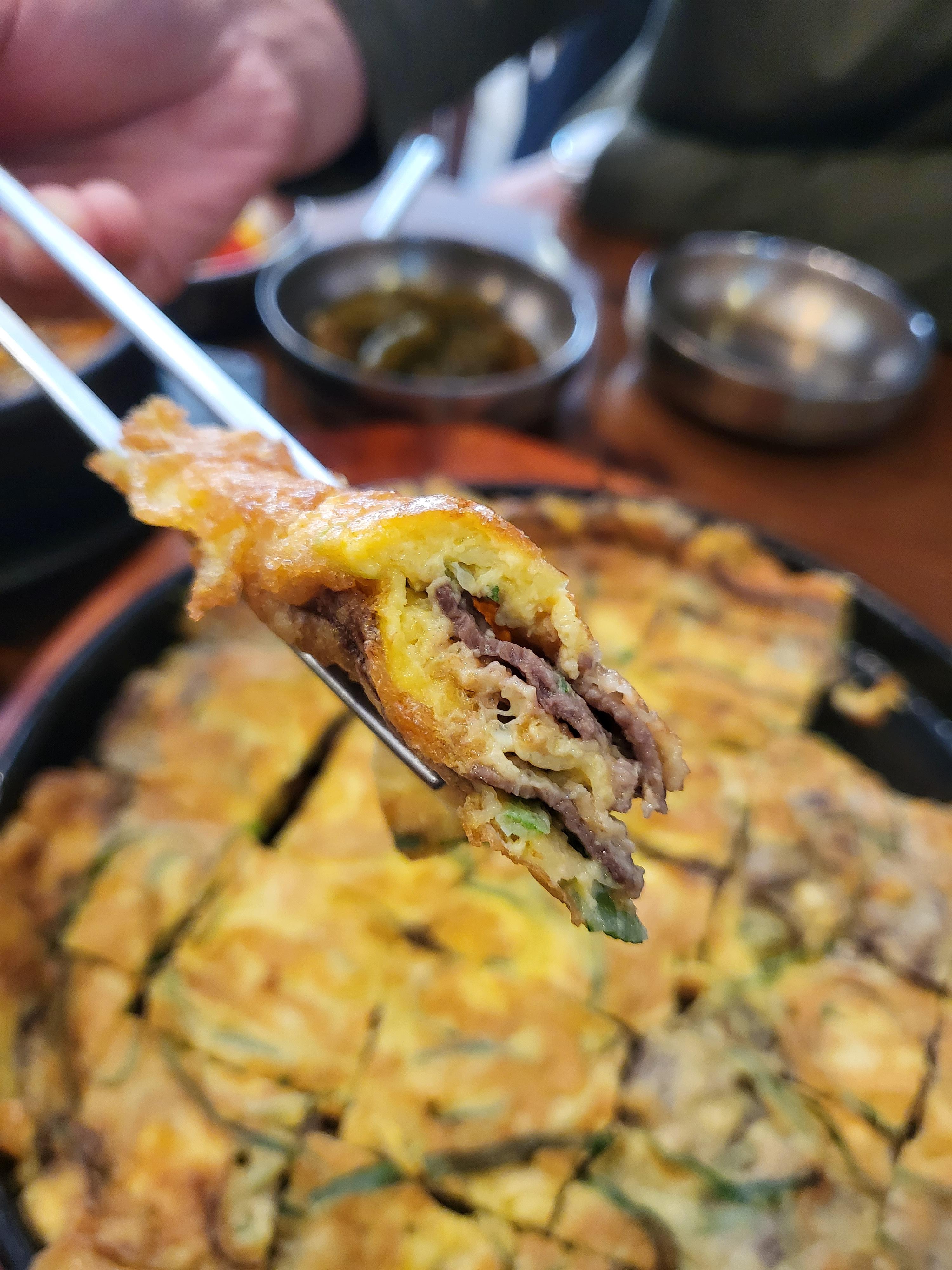 어쩜 이런 맛이 날까, 나중에 집에서 한 번 해 먹어보고 싶다. 일반 육전처럼 소고기 한 덩어리를 얇게 펴 계란과 밀가루를